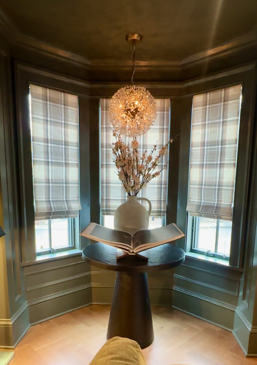 Flat Roman Shade With Valance in Master Bath – Beautiful Kravet Fabric
