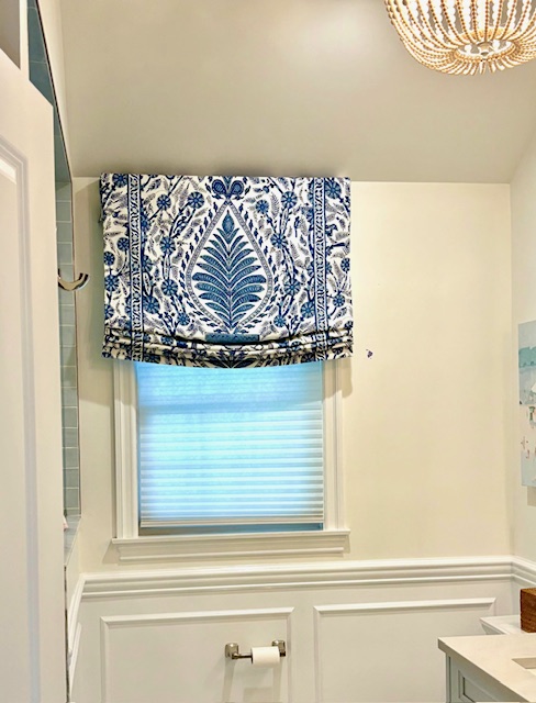 Flat Roman Shade Using Designer Fabric in Guest Bath